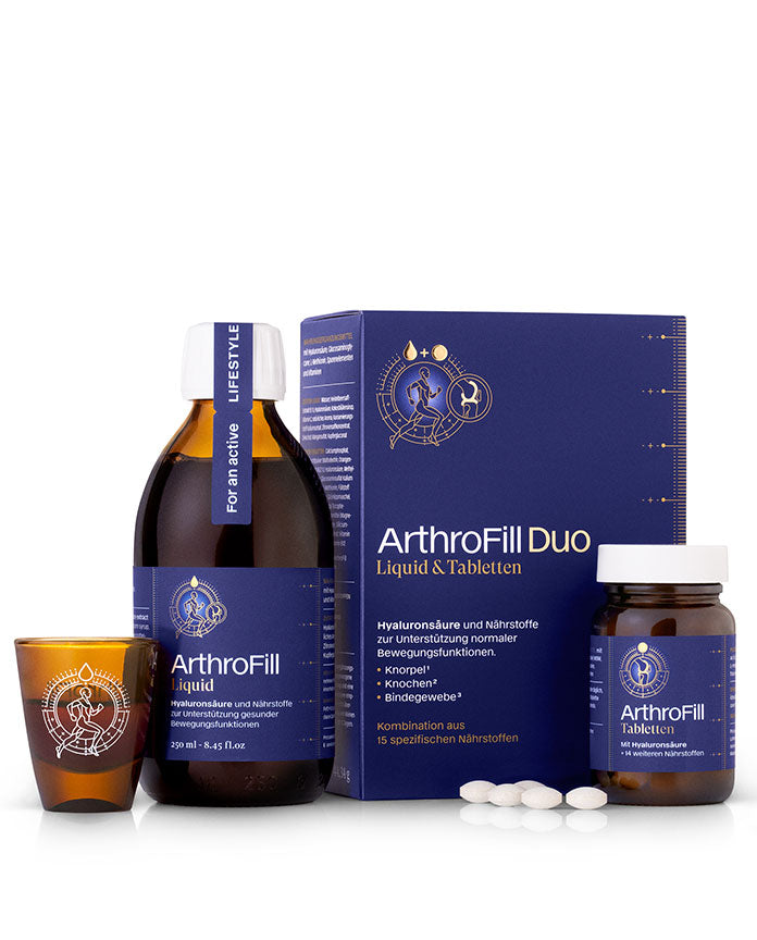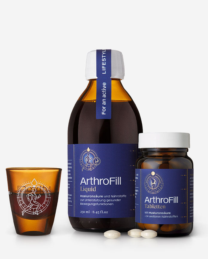 ArthroFill wird in Deutschland nach höchsten Qualitätsstandards hergestellt – in einem nach IFS zertifizierten Betrieb. Die Rezeptur basiert auf aktuellen wissenschaftlichen Erkenntnissen und ist auch für den Einsatz im Profisport geprüft. Seit 2014 bewährt – und tausendfach genutzt von Menschen, die ihre Beweglichkeit gezielt unterstützen möchten.