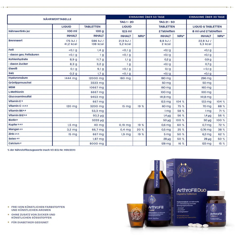 Was genau ist in ArthroFill Duo enthalten? (Nährstofftabelle, Nährwertangaben)